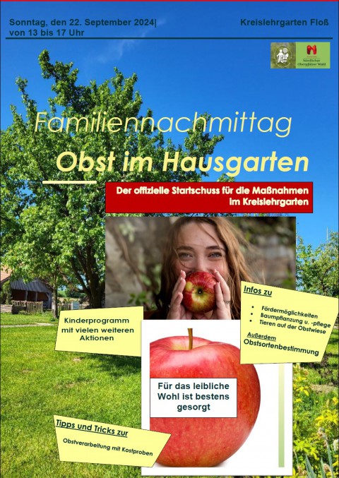 Am 22.09.2024 von 13 bis 17 Uhr findet ein Familiennachmittag mit dem Schwerpunkt „Obst im Hausgarten" durch den Kreisverband für Gartenbau und...
