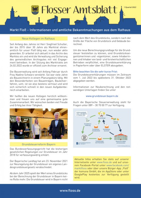 Das neue Flosser Amtsblatt finden Sie unter nachfolgendem Link: https://blickwinkel-zeitung.com/wp2/ab_2022_01/